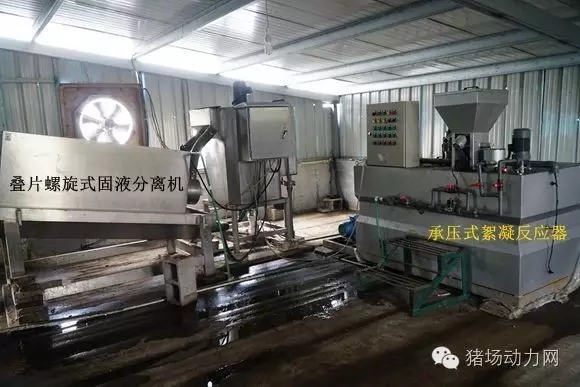 沼氣池中的水抽入添加了絮凝劑的承壓式絮凝反應(yīng)器中,對沼渣細(xì)微漂浮物進(jìn)一步絮凝成大顆粒物質(zhì),然后疊片螺旋式固液分離機(jī)對絮凝反映后的沼渣進(jìn)一步固液分離。排出的沼渣烘干后裝袋,用作花肥,此項(xiàng)目仍在開發(fā)當(dāng)中。沼液流入3000m3沼液池儲存,年產(chǎn)沼液萬余噸。